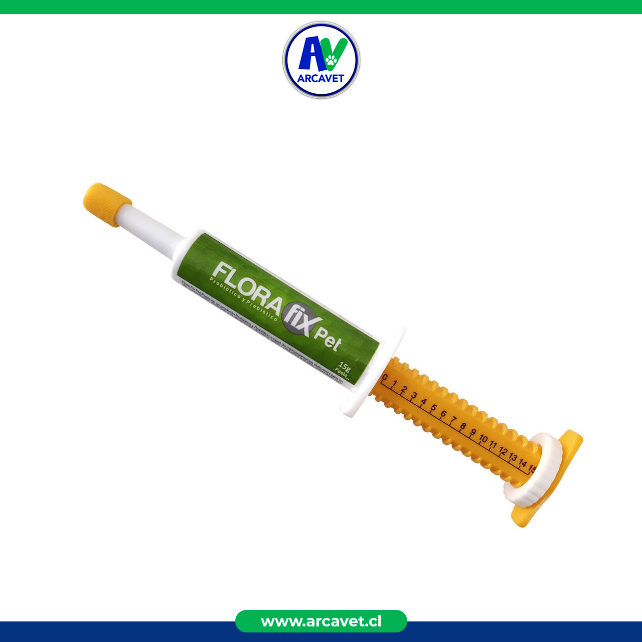 Florafix Pet es un suplemento simbiótico (probiótico + prebiótico) en pasta para perros, gatos y animales exóticos, diseñado para equilibrar la microbiota intestinal. Su fórmula con microorganismos vivos y levaduras fortalece la digestión, previene diarreas, refuerza el sistema inmune y es ideal para situaciones de estrés, cambios de dieta o uso de antibióticos.