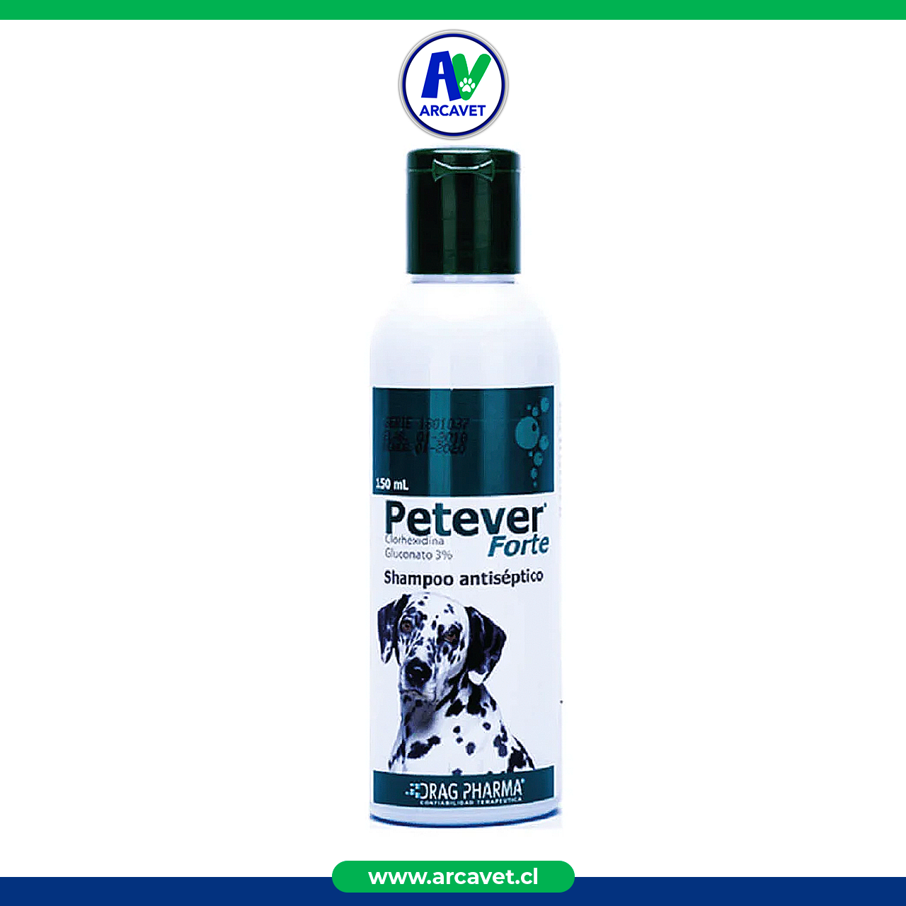 Petever Forte 3% es un champú antiséptico de uso veterinario para perros y gatos, formulado con clorhexidina al 3%. Es eficaz en el tratamiento de infecciones cutáneas superficiales y profundas, incluyendo bacterias como Staphylococcus intermedius y levaduras como Malassezia. Ayuda a controlar la seborrea y piodermitis, aliviando la picazón y el mal olor.